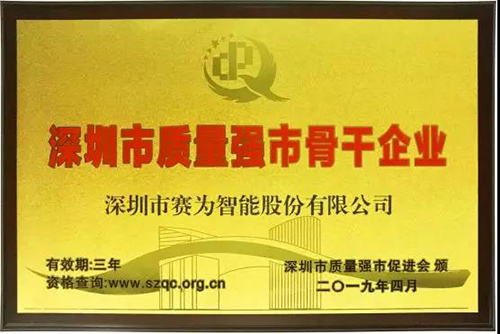 深圳市赛为智能股份有限公司获第四批“深圳市质量强市骨干企业”称号。