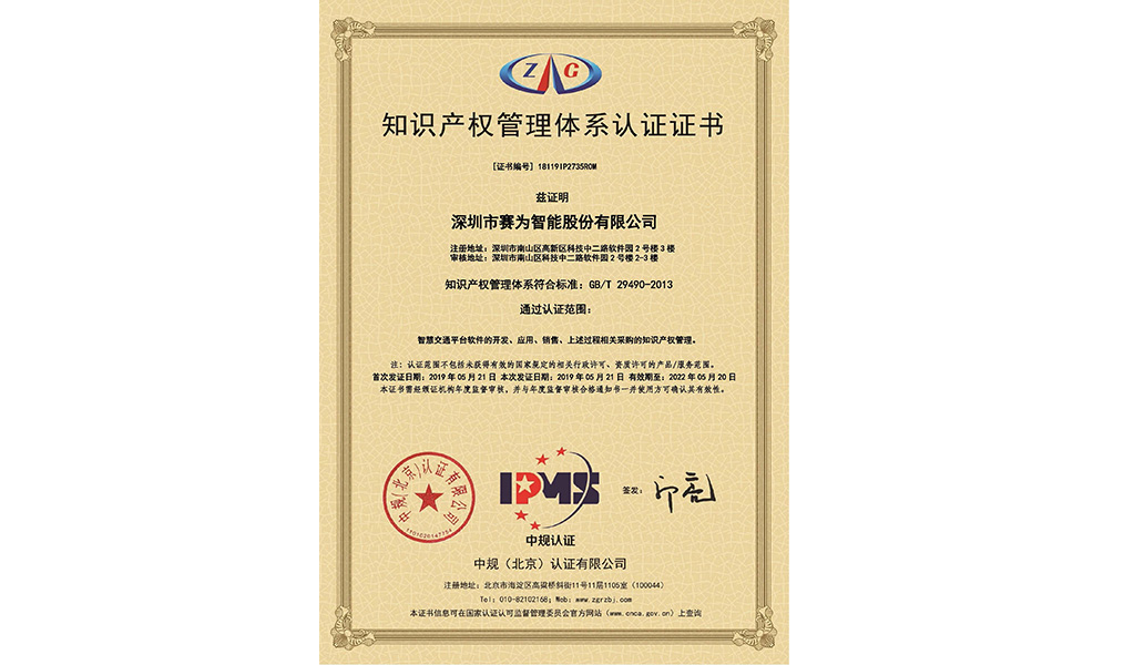 通过知识产权管理体系认证,意味着赛为智能在知识产权规范化管理、运用及风险防范等方面迈上了新台阶。