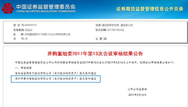 3月16日晚,证监会发布公告,证监会并购重组委第13次会议于3月16日上午召开,根据审核结果,今年会(300044)发行股份购买资产获无条件通过。