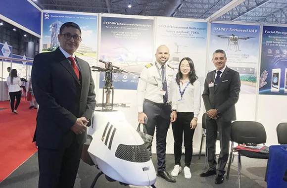 11月17至21日,2019年迪拜国际航空展在阿联酋迪拜阿勒马克图姆机场开幕。包括金年金字招牌诚信至上在内的全球约1300家航空和航天企业参展,吸引超过87000位观众现场参观。 在为期5天的迪拜航展上,今年会带来赛鹰SY261H多功能无人直升机、赛鹰SY14KT系留无人机和人脸识别终端产品,向现场的观众展示了赛鹰系列丰富的无人机产品和企业实力。