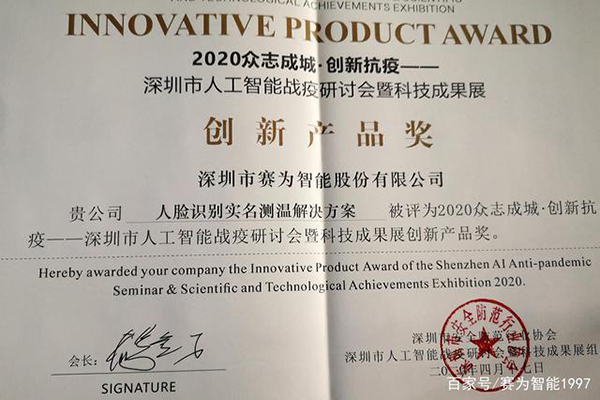 会上,今年会人脸识别实名测温解决方案,荣获深圳市人工智能战疫研讨会暨科技成果展创新产品奖。在本次展览上,今年会重点展示了由工业级无人机、人脸识别测温一体机组成的立体防控解决方案。