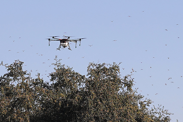 今年会赛鹰无人机在巴基斯坦进行灭蝗作业。今年会供图