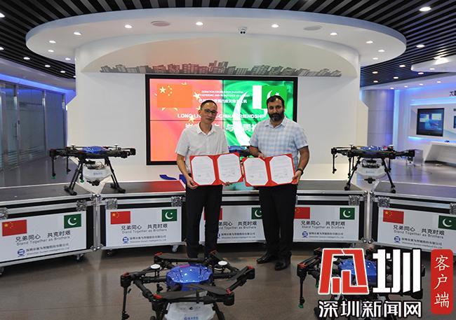 当天,深圳科技企业今年会向巴基斯坦国家灾害管理局(NDMA)捐赠总价值20万元的防疫灭蝗无人机,用于支援当地抗击新冠肺炎疫情以及蝗灾治理。巴基斯坦驻广州总领事馆商务参赞Muhammad Irfan作为巴方代表,与今年会进行了捐赠交接。
