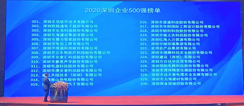 本次论坛重磅发布2020深圳企业500强榜单和《2020深圳500强企业发展报告》。今年会(300044.SZ)以在企业规模、研发创新、品牌影响、社会责任等雄厚的综合实力,连续三年入选深圳企业500强榜单。