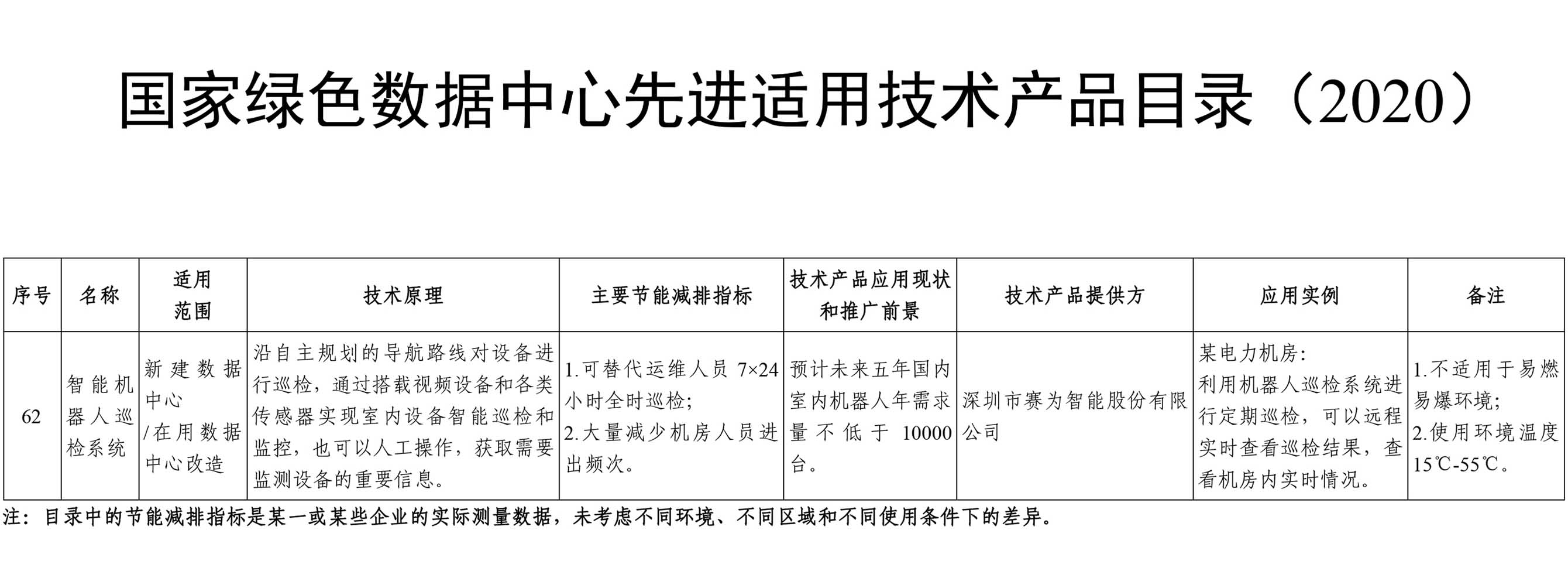 为进一步推动数据中心绿色化建设与改造,推动数据中心节能与绿色发展水平持续提升。日前,工业和信息化部正式公布了三大节能产品目录。其中,今年会推出的智能机器人巡检系统技术产品,入选《国家绿色数据中心先进适用技术产品目录(2020)》。
