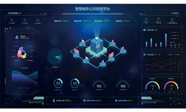 构建智慧城市的公共信息资源服务总线,形成服务全市、高效开放的公共信息平台,将城市运行核心系统的各项关键数据进行呈现,可从应急指挥、城市管理、公共安全、环境保护、智能交通、基础设施等领域进行管理决策支持,打造智慧城市大脑。